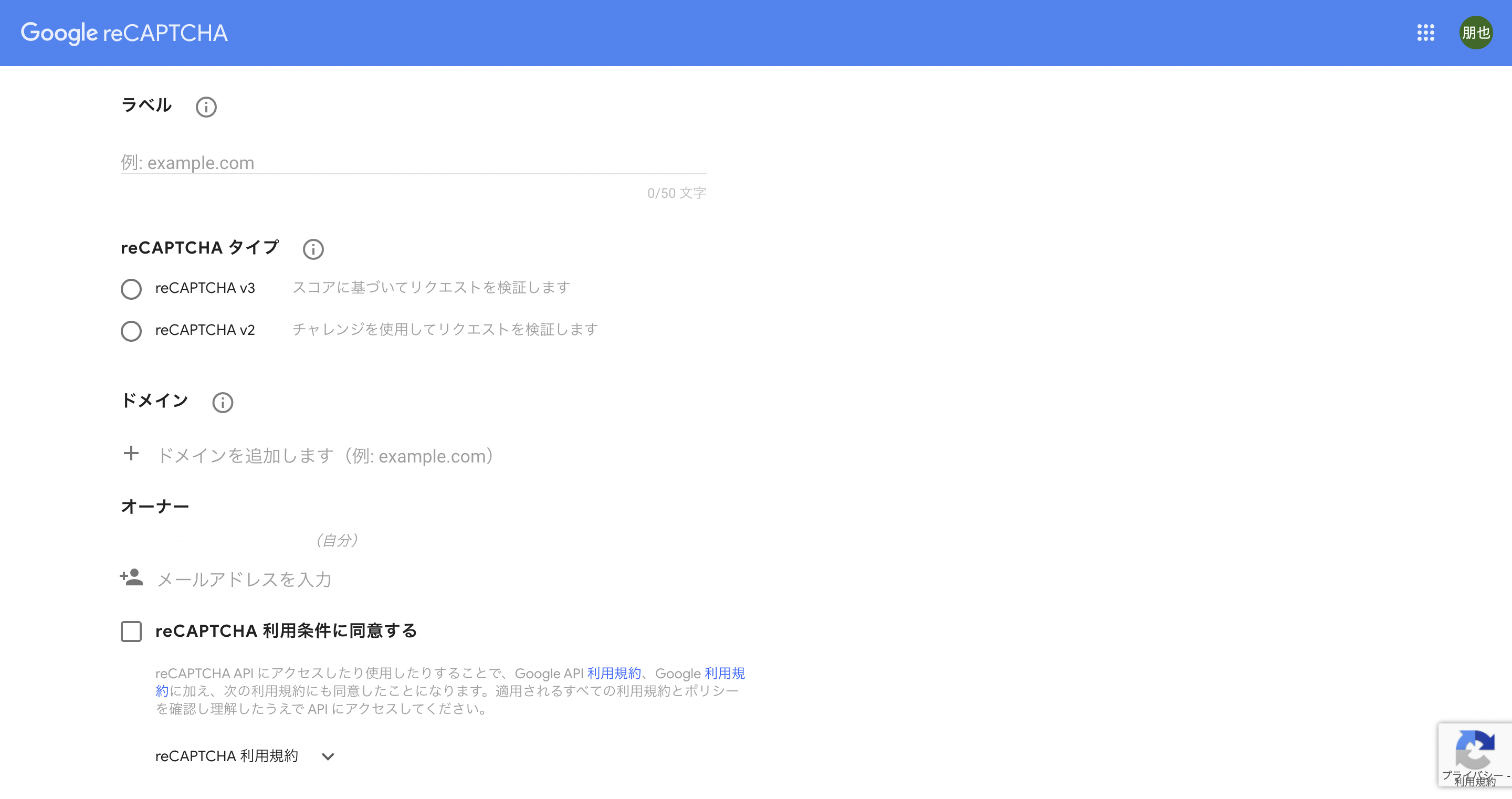 reCAPTCHAへの登録